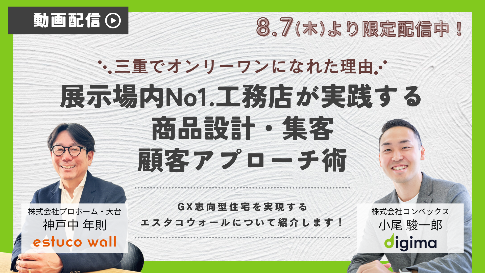 今回のセミナーでは、三重県で高い集客力と成約率を実現している「プロホーム・大台」様をお迎えし、実際に現場で行われている集客施策や営業導線の構築法を余すところなく公開します!